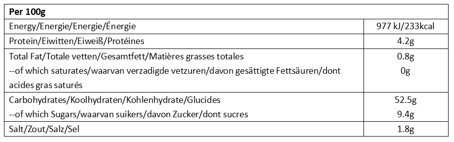 Rice Cake 70%: Rice, Salt, Acidity Regulator (E330)./Original Sauce 30%: White Sugar, Glucose, Red Pepper Powder 1%, Seasoning (flavour Enhancer(E621), White Sugar, Salt, flavour Enhancer (E635), Garlic Powder, Onion Powder, Black Pepper Powder, Acidity Regulator(E330)), Corn Starch, Tteokbokki Seasoning (Red Pepper Powder , Sugar, Salt, Garlic Powder, Onion Powder, Soy Sauce Powder (Skimmed Soy, Salt, Wheat), Yeast Extract Powder, Oleoresin Capsicum, Paprika, Acidity Regulator(E330)), Salt, flavour Enhancer (E621), Soy Flour, Garlic Powder, Corn Flour, Onion Powder, Black Pepper Powder, Thickener (E412), flavour Enhancer(E635).