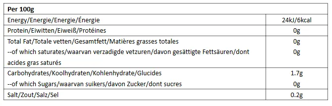 Sweetener (E968), mixture [konjac powder, acidity regulator (E331), gelling agents (E407, E418, E327), thickener (E415), carrier (E1400), firming agent (E508)], acidity regulator (E330), peach concentrate powder (0.01%), flavouring (peach flavour), vegetable collagen, antioxidant (E300), sweetener (E955), citrus extract.