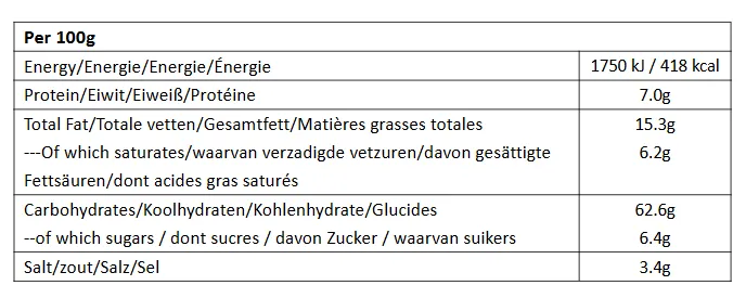 Noodles(71%): Wheat flour, modified starch (E1420), palm oil, wheat gluten, salt, humectant (E422), soybean oil, onion-flavoured seasoning (fructose syrup, concentrated onion juice, water, concentrated garlic juice, salt, yeast extract, flavouring, flavour enhancer (E635)), raising agent (E501), thickener (E412), water, antioxidant (E307), emulsifier (E322 (soy)), raising agent (E500), acidity regulator (E339), emulsifier (E475), flavouring, colour (E101), acidity regulator (E330)./Sauce Packet (17%) :Water,flavouring(artificial chicken flavour), sugar, soy sauce, habanero pepper powder, soybean oil, chili powder, onion, chili-flavoured flavouring (chili flavour), flavour enhancer (E621), garlic, modified starch (E1420), chili oil, chili oleoresin, black pepper powder, curry seasoning (curry powder, maltodextrin (E1400), salt, glucose, yeast extract, flavour enhancer (E635)), lactic acid bacteria fermentation powder (Lactococcus lactis subsp. lactis, flavouring, maltodextrin (E1400))/ Seasoning Powder Packet (12%):Whole milk powder, formulated milk powder, sugar, salt, processed cheese, cream compound seasoning powder (cream powder, sugar, salt), thickener (E1420), parsley, soybean oil, garlic powder, black pepper powder.